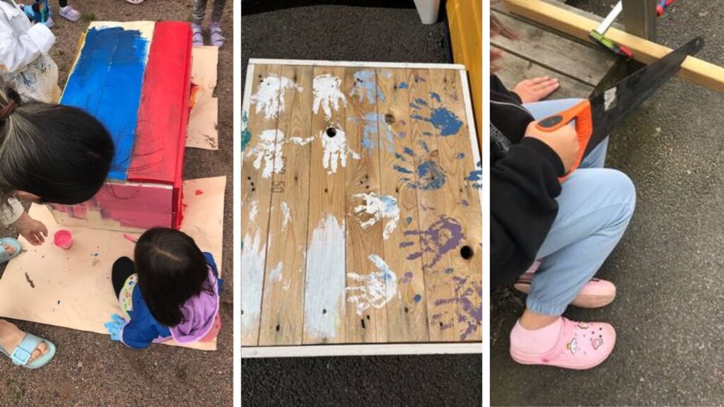 ”Vi satte igång och byggde helt enkelt. Det var otroligt kul. Tio av barnen var aktiva i byggandet och inte minst deras mammor, som verkligen uppskattade att prova på att snickra. Vi följde Make a Moves och Växtvärkets principer om att inte bygga normativa redskap som begränsar leken. Barnen ska kunna bestämma fritt hur de vill använda dem”, säger Amanda Kaså.